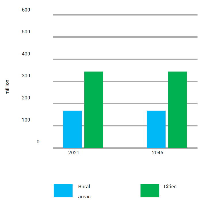 In 2021, more people with diabetes lived in cities (360 million) than in rural areas (176.6 million), with the prevalence of 12.1% in cities and 8.3% in rural areas. The number of people with diabetes living in cities is expected to increase to 596.5 million in 2045 as a result of global urbanization. And also, up to 13.9% due to demographic aging of the population.