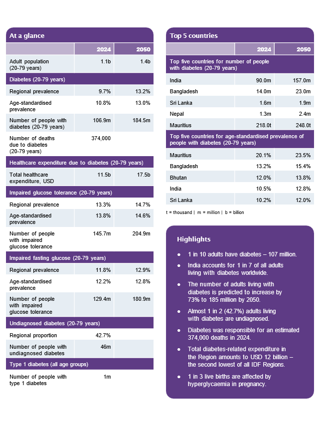 | Total health expenditure due to diabetesii (2024 USD) | 1.015 trillion | 1.043 trillion |